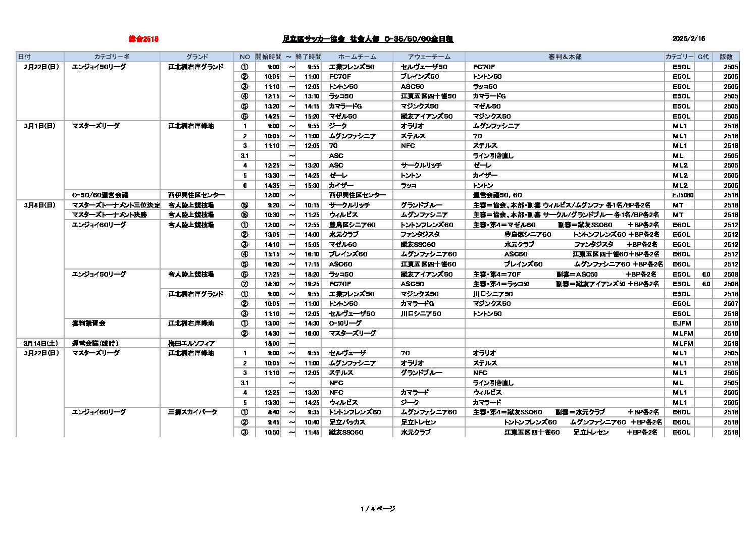 2月16日、日程を更新しました。...