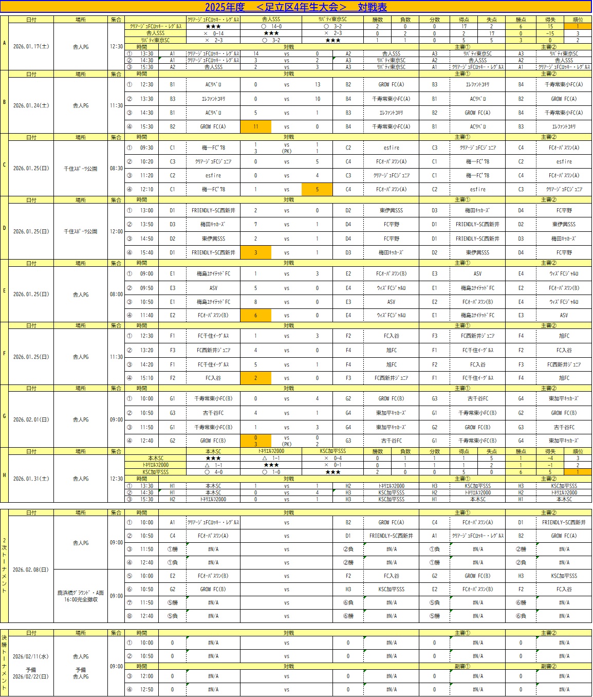 一次予選結果終了時点の対戦表を掲載します。(2/1現在)